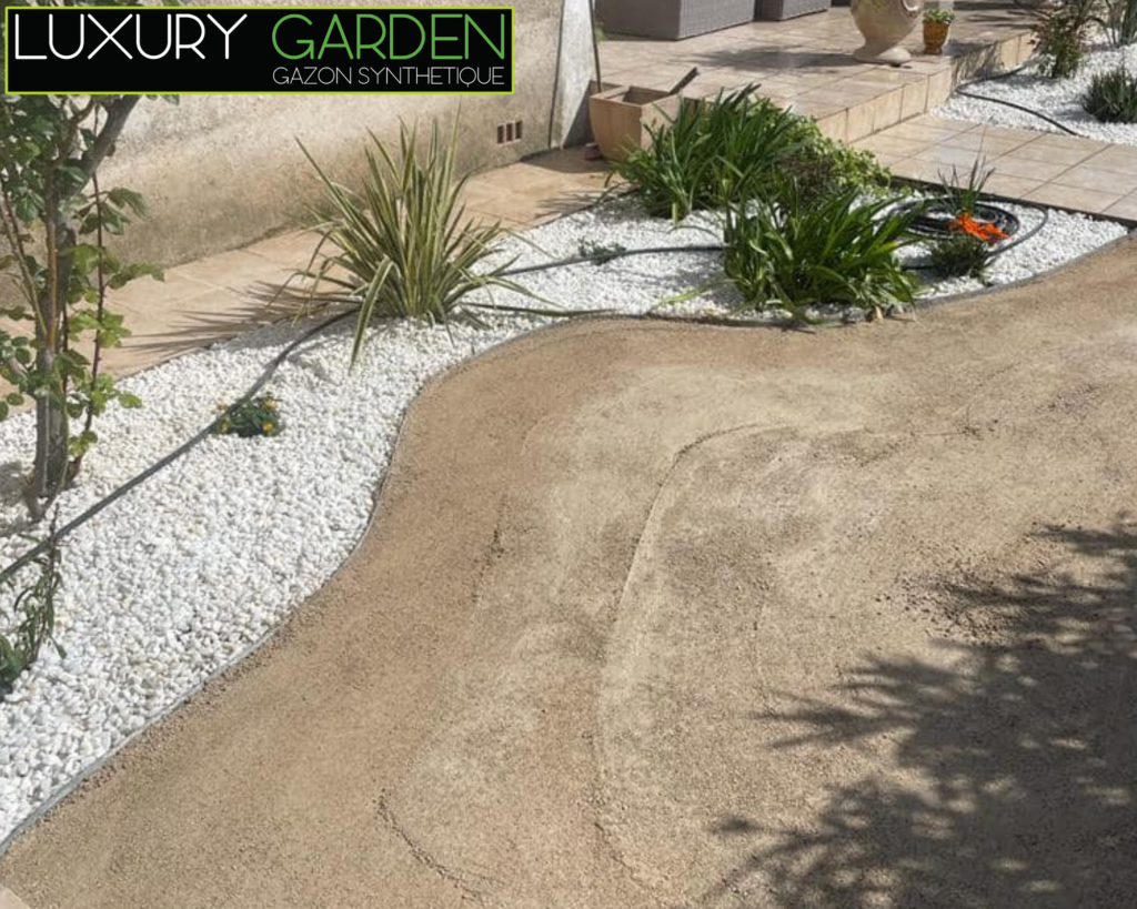 L’installation du gazon synthétique est un processus clé pour assurer sa longévité et son esthétique. Chez Luxury Garden, nous commençons par préparer le sol pour garantir une surface plane et stable. Le gazon artificiel est ensuite soigneusement déroulé et fixé, en veillant à ce que les joints soient invisibles et que la surface soit parfaitement nivelée. Une attention particulière est portée autour des éléments du jardin, comme les arbres ou les bordures, pour une intégration harmonieuse.