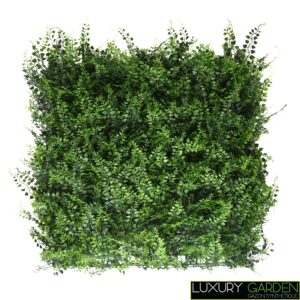 A nossa folhagem artificial é cuidadosamente concebida para se assemelhar perfeitamente à sua contraparte natural, oferecendo uma solução prática e estética para criar privacidade visual e acrescentar um ambiente natural ao seu ambiente. Quer pretenda cobrir uma vedação, um muro ou criar uma separação no seu jardim, a nossa folhagem artificial é fácil de instalar e de manter. Resistente às intempéries e de longa duração, mantém o seu aspeto impecável durante todo o ano, sem necessidade de rega ou de poda.